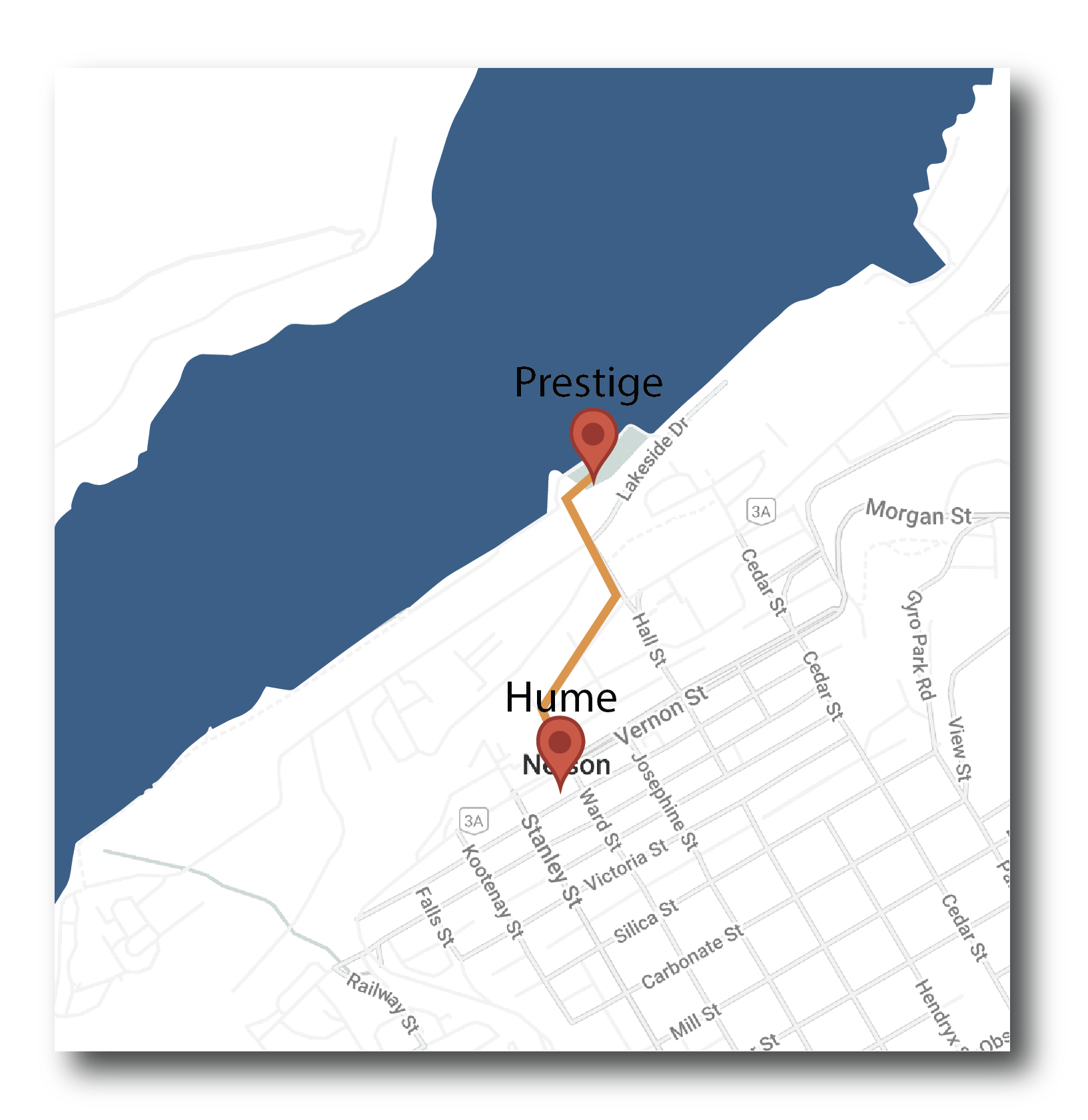 The Prestige Lakeside Resort is located at 701 Lakeside Drive, Nelson BC, Canada, and it's situated on the waterfront of Kootenay Lake and is within walking distance of downtown Nelson.